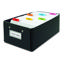- Inkluderar blanka pappersinsatser i olika färger som du kan skriva på: blå, röd, gul, grön, orange, rosa.